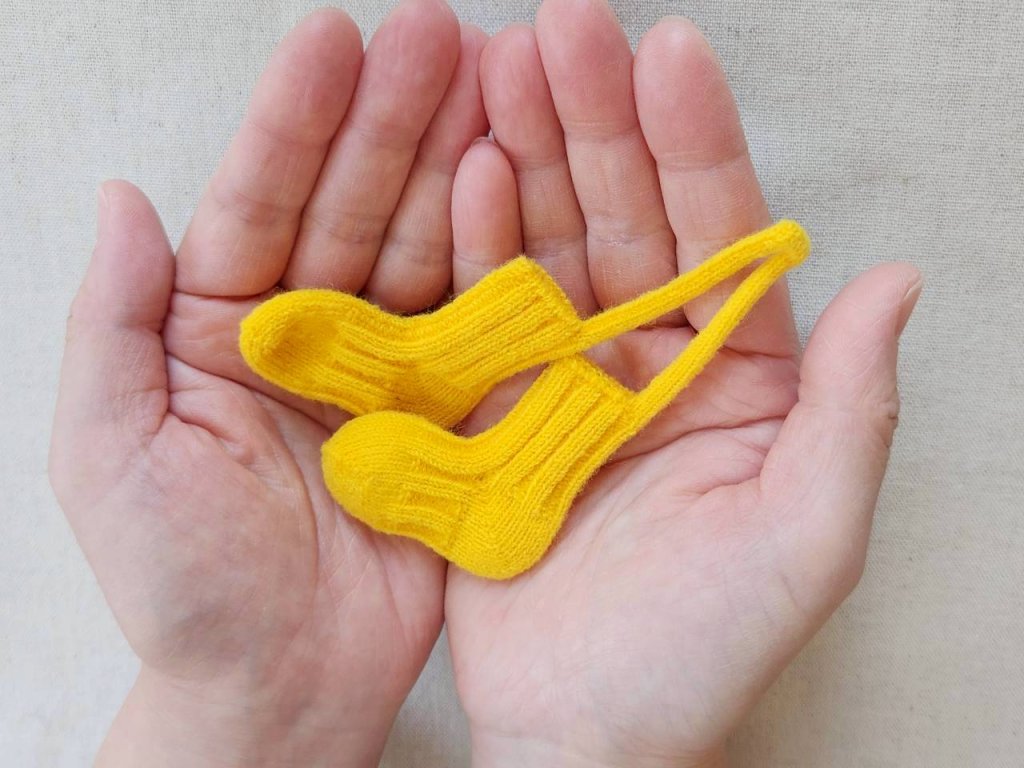 小さな命をイメージした靴下。手のひらに乗るくらいのサイズ感です。 - 優しい色合い